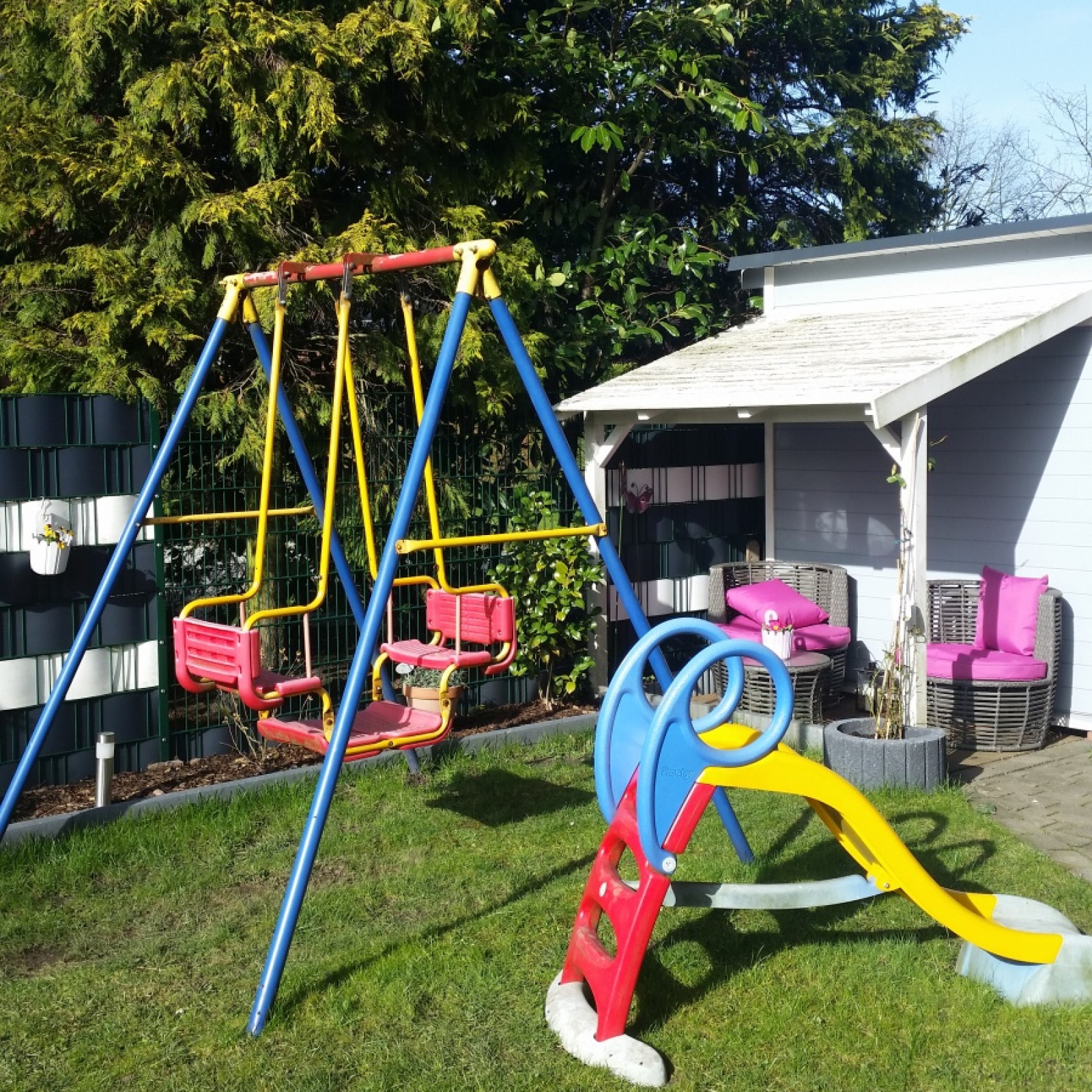 Wir haben einen kleinen Garten mit Schaukel, Rutsche und vielen Spielzeugen und halten uns sehr gerne im Freien auf. In der nahen Umgebung gibt es mehrere schöne Spielplätze, die wir prima zu Fuß erreichen können. Gerne machen wir auch ausgedehnte Waldspaziergänge, hier können die Kinder über Wiesen und Felder laufen und zwischen Blättern und Bäumen der Fantasie freien Lauf lassen.